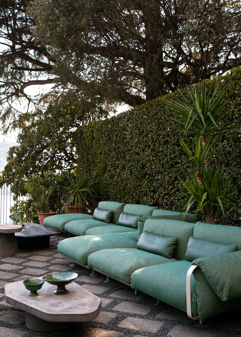 Lazzeroni auszeichnet. Eine Kollektion aus Beistelltischen für den Außenbereich, die sich durch die Kombination