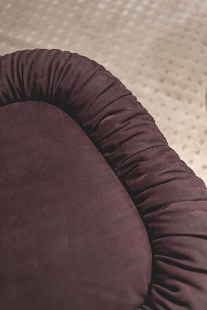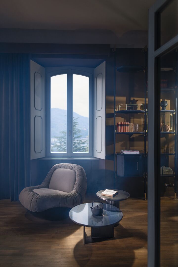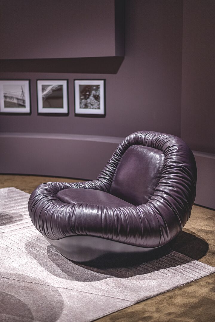 Der Sessel Barret des Designstudios Draga & Aurel vervollständigt die Idee des Komforts mit einer extra großen Sitzfläche, die von einer starren Schale umgeben ist, welche die raffinierten Formen der Möbel der 1970er Jahre neu interpretiert. Dieser ergonomisch und großzügig gestaltete Drehsessel wird durch einen weichen, gewellten Lederbezug veredelt, der die Polsterung noch weicher im Griff macht. Die niedrige, tiefe und anschmiegsame Sitzfläche macht Barret zu einem raffinierten, gemütlichen Zufluchtsort, in den man für maximale Entspannung versinken kann.