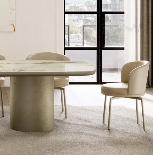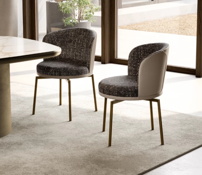 Die Metallbeine, entweder drehbar oder fest, bieten eine attraktive ästhetische Alternative zum klassischen Sessel und vermitteln ein Gefühl von Leichtigkeit.
