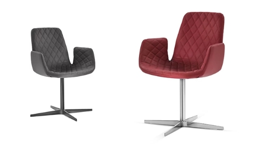 Gepolsterter Stuhl und Sessel mit lackierten Metallbeinen drehbar