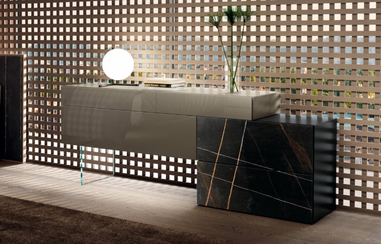 Klare, elegante Linien prägen die ausgerichteten oder versetzt angeordneten Formen dieser Schlafzimmerkommoden und verleihen dem Raum eine lebendige, dynamische Wirkung.