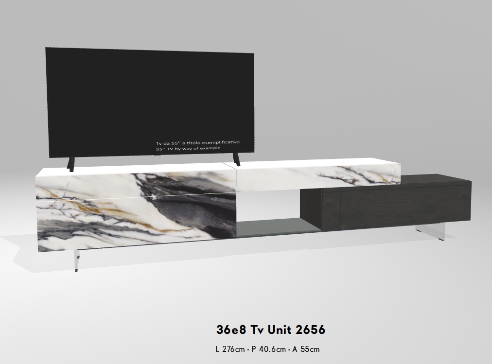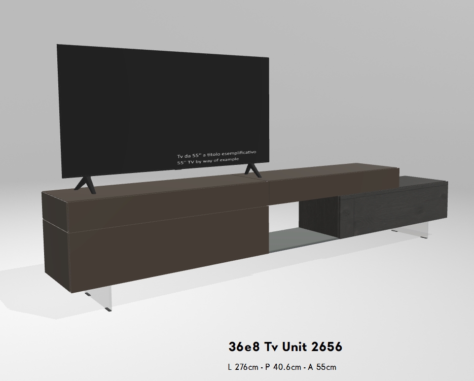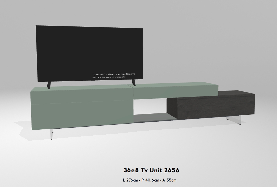 Das 36e8 TV-Möbel ist sowohl als Einzelmodul als auch als Teil einer komplexeren Wohnlösung erhältlich. Dank seines modularen Aufbaus lässt sich das Design frei und individuell nach Ihren Bedürfnissen gestalten.