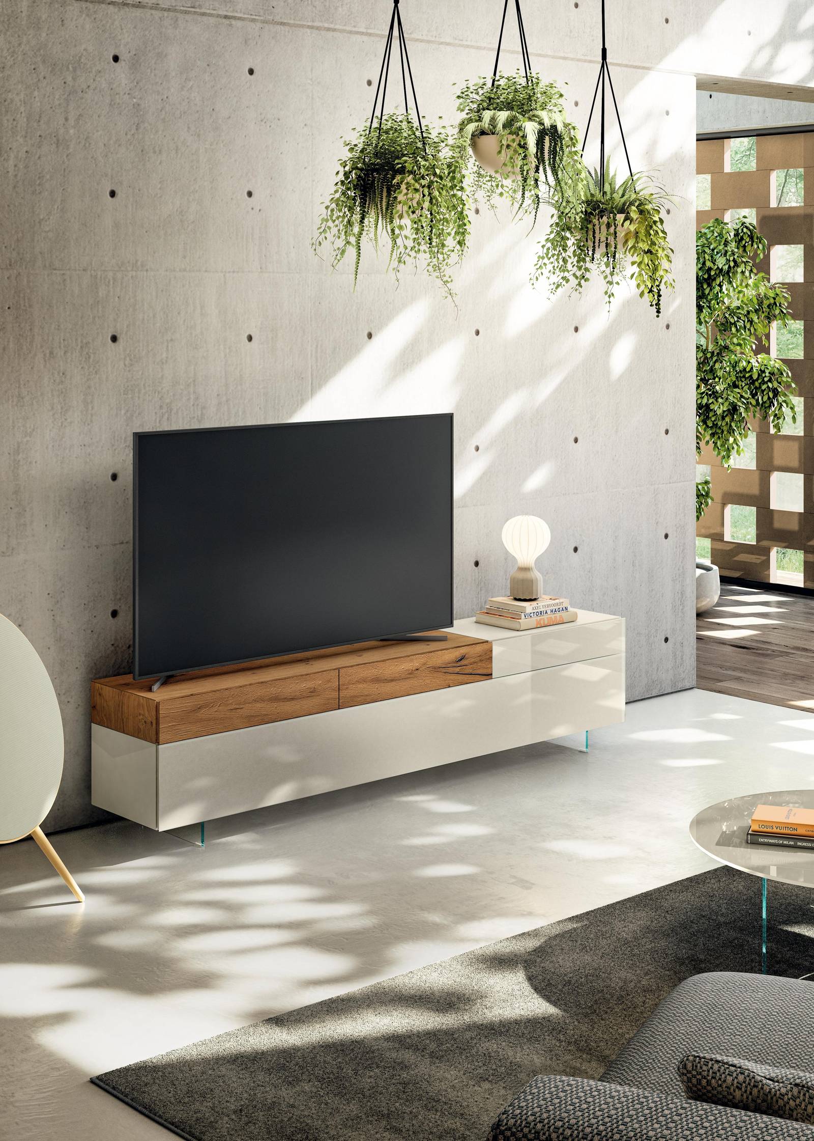 Lago 36e8 Tv Unit 2657 Sideboard Lackiert Matt Xglass mit Holz