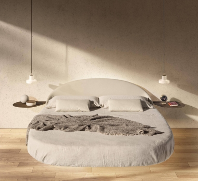 Das Roundy Fluttua Bett ist ein exklusives rundes Hängebett, das mit seiner geschwungenen Form und dem ikonischen schwebenden Design die Raumwahrnehmung im Schlafzimmer neu definiert. Die fließenden Linien sorgen für offene Wege, visuelle Leichtigkeit und eine besonders behagliche Atmosphäre – ideal für moderne Design-Schlafzimmer.