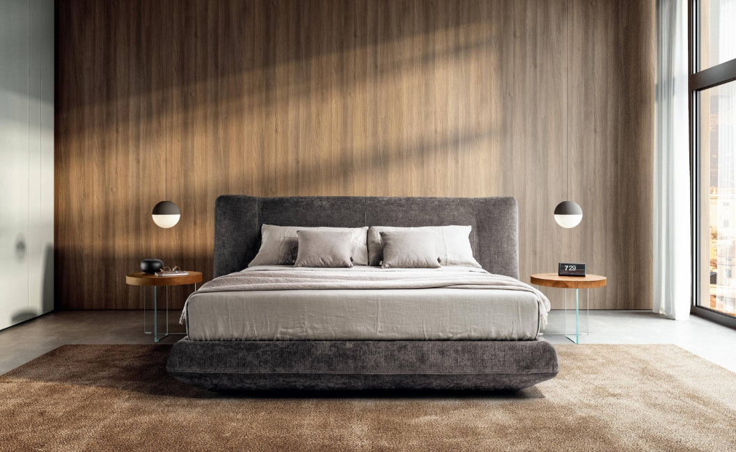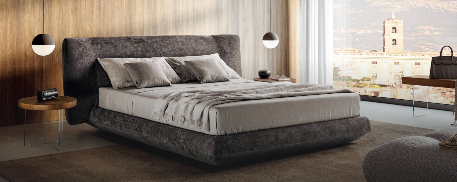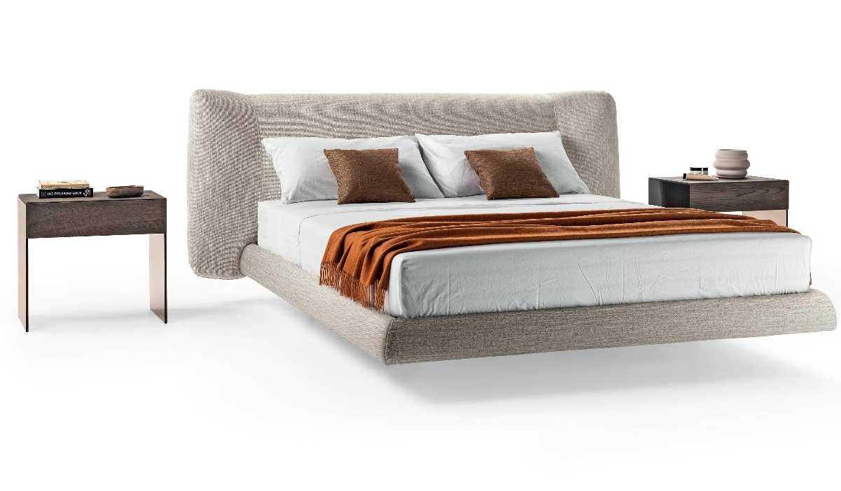 Das Bed-In Bed ist ein innovatives Designerbett mit Stauraum, das Komfort, Funktionalität und modernes Design auf besondere Weise vereint. Das charakteristische geformte Kopfteil besteht aus einem großflächigen, ergonomisch gestalteten Kissen, das sich sanft anschmiegt und zum Lesen, Entspannen und Verweilen einlädt. Es vermittelt ein Gefühl von Geborgenheit und macht das Bett zum Mittelpunkt des Schlafzimmers.