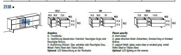 Lago Dresser 36e8 Glass 2138 aus Glas Lackiert oder Matt mit Xglass