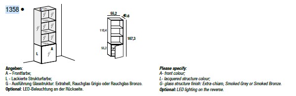 Lago Glass Bookshel 1358 in verschiedenen Oberflächen mit Glas