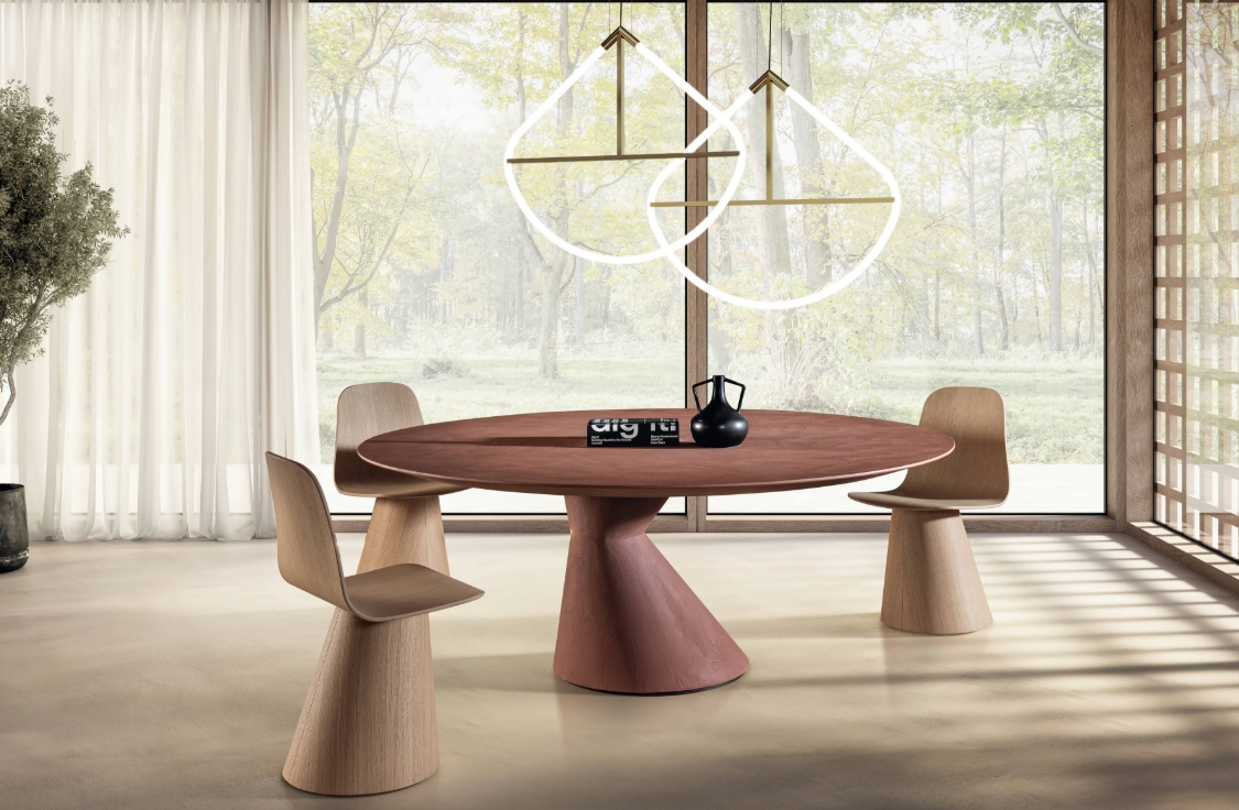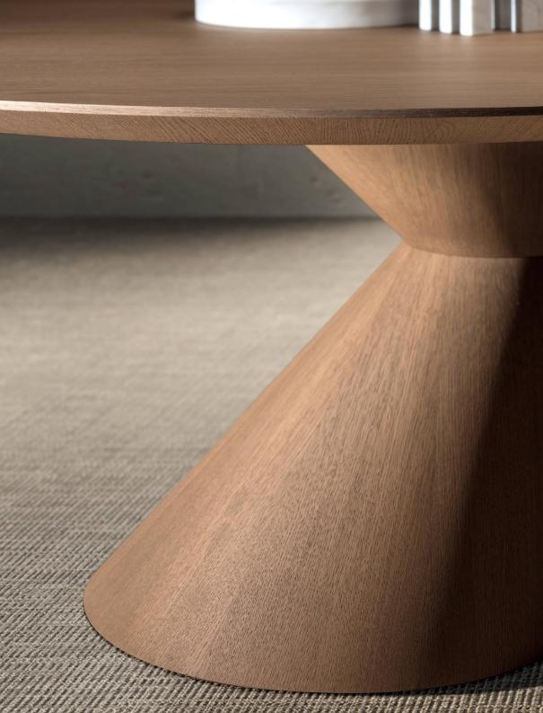 Klare, markante Linien prägen das Design von Chapeau, einem Tisch mit starker optischer Präsenz, dessen Basis seinen Charakter bestimmt und die Struktur betont. Die Formen überraschen, da sie sich aus unterschiedlichen Blickwinkeln unterschiedlich wahrnehmen lassen. Erhältlich in zwei Varianten – mit ovaler oder runder Platte und Basis – zeichnet sich der moderne Tisch Chapeau durch die kragarmartige Leichtigkeit der Tischplatte aus, ein visuelles Gleichgewicht, das durch ein konstruiertes System gewährleistet wird, das Stabilität und maximale Leistung garantiert. Chapeau vereint Innovation und expressive Kraft und ist für Wohn- sowie Objektbereiche konzipiert, in denen Material und Geometrie zu den absoluten Protagonisten werden.
