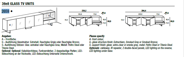 Die besondere Stärke des 36e8 Glass TV Unit liegt in seiner Modularität: Elemente können wandhängend oder bodenstehend konfiguriert, offen oder geschlossen gestaltet und in unterschiedlichen Größen kombiniert werden. So entsteht eine maßgeschneiderte Lösung, die perfekt auf Raum, Technik und persönliche Stilvorstellungen abgestimmt ist.