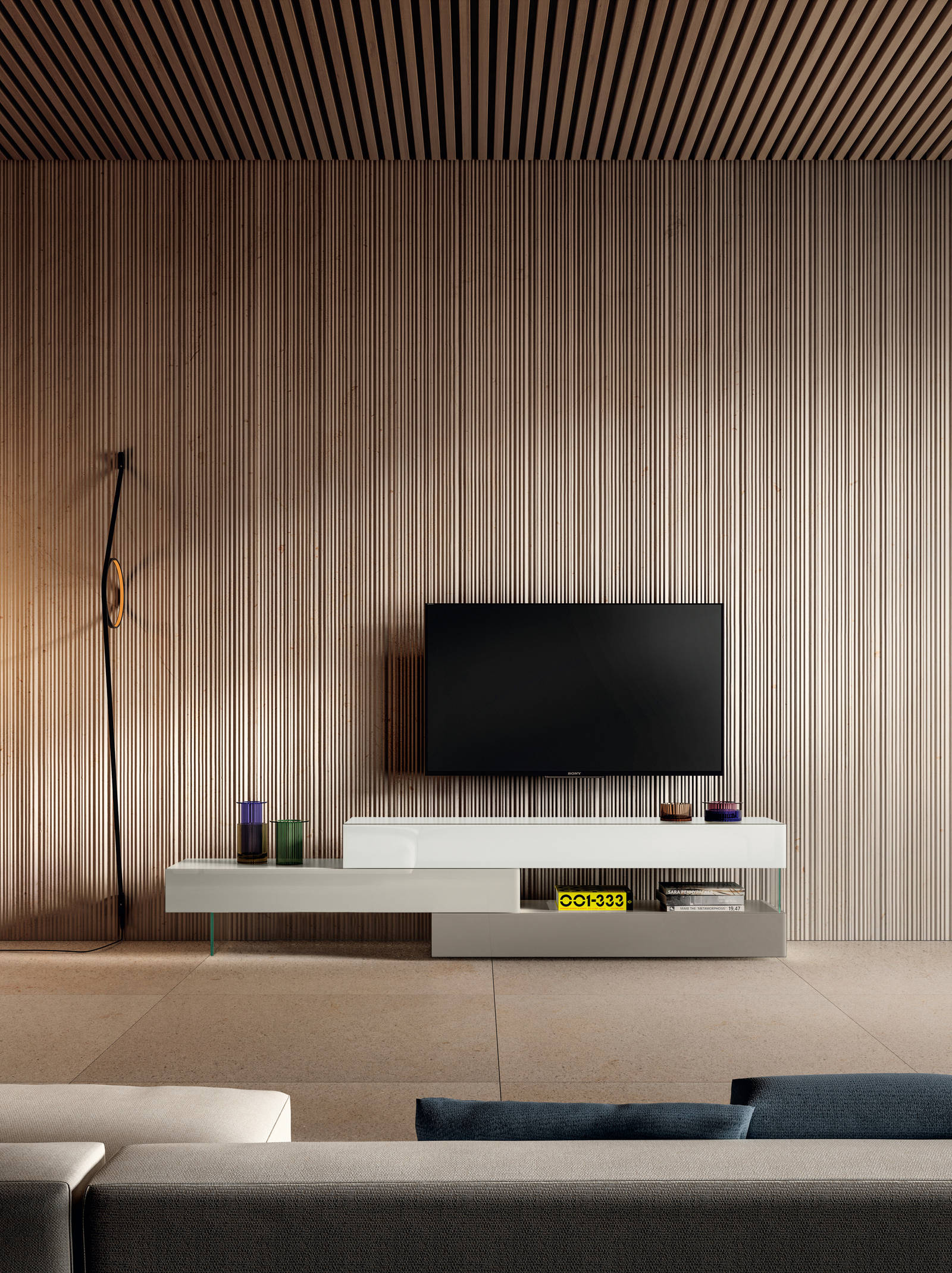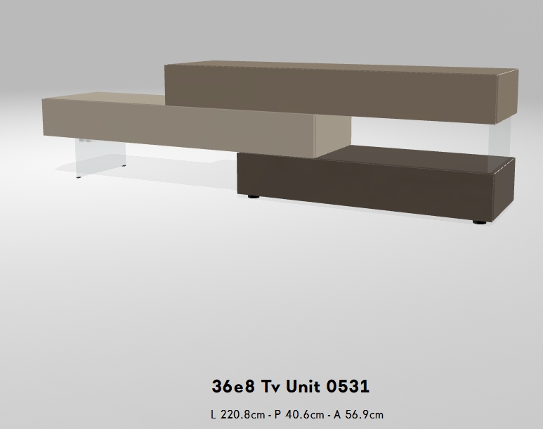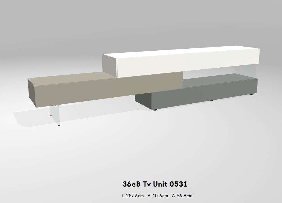 Die 36e8 TV-Unit ist sowohl als einzelnes Modul als auch als Teil einer strukturierteren Komposition erhältlich. Dank ihres modularen Aufbaus können Sie Ihr Design frei nach Ihren Bedürfnissen gestalten. Ob wandmontiert oder freistehend auf dem Boden – sie bietet flexible Lösungen für unterschiedliche Platz- und Größenanforderungen und garantiert dabei höchste Qualitätsstandards.