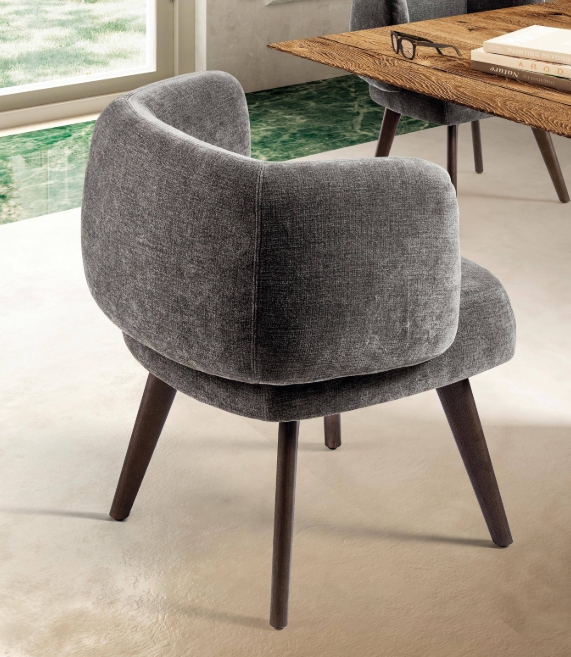 Geschwungene, ergonomisch geformte Linien, die den Körper sanft umschließen und sich ihm anpassen, prägen diesen weichen Sitz. Die einladenden Formen und die großzügige Polsterung des Zeppelin Chairs sorgen für ein außergewöhnliches Komfortgefühl und machen ihn zu einem ergonomischen Designstuhl für den Essbereich.