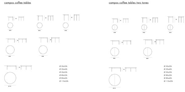 Sovet Campos Couchtisch in Glas oder Keramik Oberfläche in verschiedenen Größen