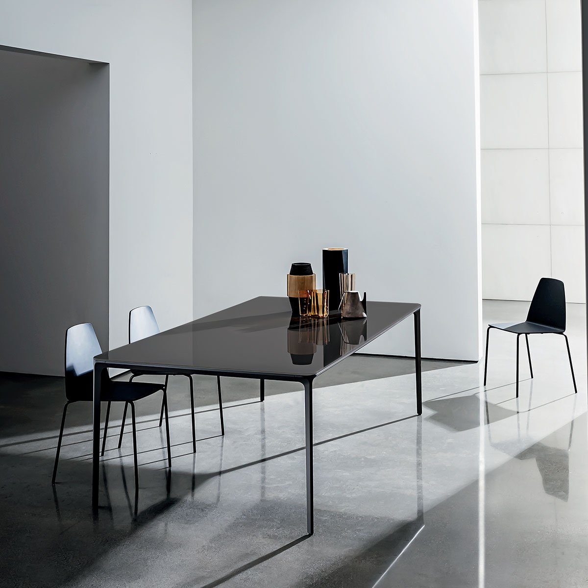 Slim von Matthias Demacker für Sovet entworfen, ist ein Erweiterbar Tisch mit Metallstruktur und Beinen, der aus Glas, Keramik, Holz oder HPL besteht. Verfügbar in mehreren Ausführungen und Abmessungen. In der Version mit Holzplatte ist die Erweiterung immer in HPL.