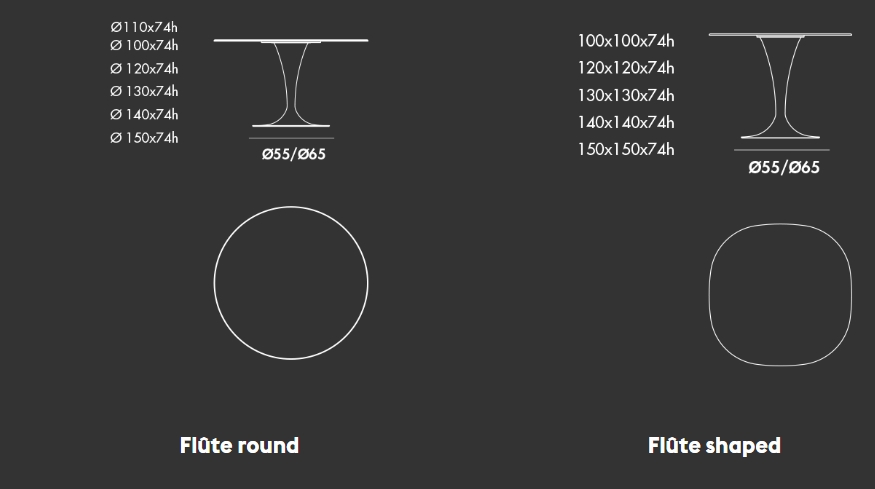 100 dia x 74 h / 110 dia x 74 h / 120 dia x 74 h