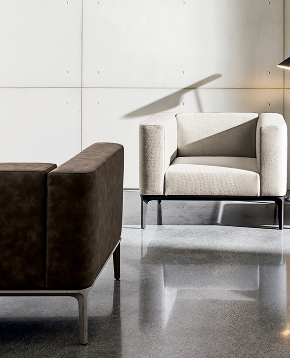 Slim von Matthias Demacker für Sovet entworfen, ist ein 1-2-3 Sitzer-Sofa mit Metallstruktur und Polsterung aus Leder, Stoff oder Samt. Verfügbar in mehreren Ausführungen und Modellen.