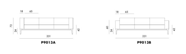 231×72 dreisitz Sofa   / 231×60 dreisitzsofa