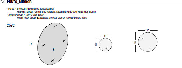 Punto ist ein grafisches Zeichen, das in einen Spiegel verwandelt wurde: ein runder Punkt, Halbmond, Quadrat oder Rechteck, das sich mit den LagoLinea-Regalen kombinieren lässt, um versteckten Stauraum zu schaffen. Punto ist ein perfekter Aufbewahrungsort für Badezimmer oder Schlafzimmer, kann aber auch als einfacher Spiegel in jedem Raum verwendet werden: Schlafzimmer, Wohnzimmer oder Kinderzimmer.